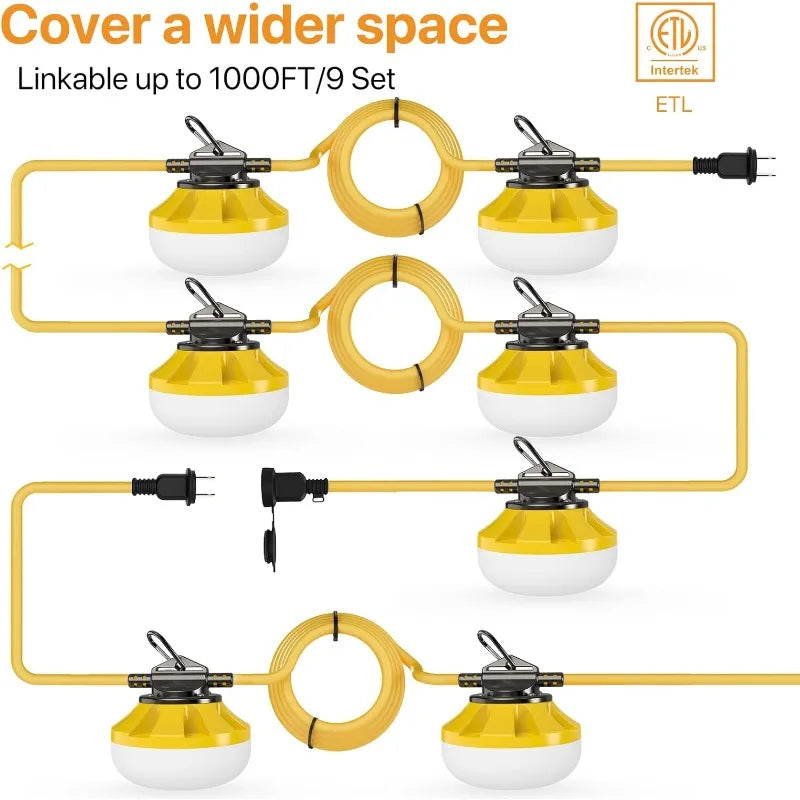 Super Bright & Energy Efficiency: Emits an impressive 10000 lumens of brilliant, 5000K white light, the led construction string lights are ideal for illuminating vast areas and meeting the demands of expansive environments!