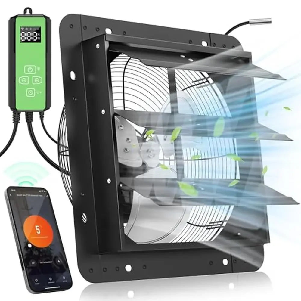 Premium Material: The 12" exhaust fan is crafted from high-quality metal with a matte black finish, which is rust-resistant and unaffected by weather conditions. It can withstand humidity and high temperatures, extending the lifespan of the fan.