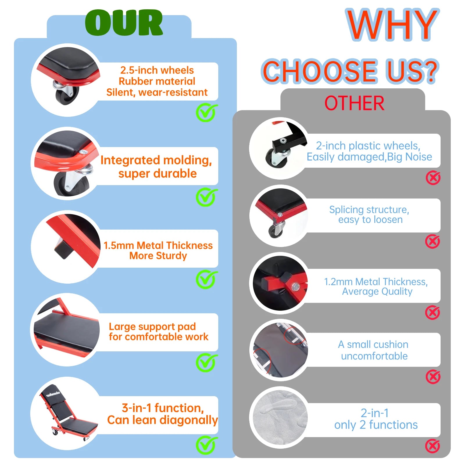 • Superior Load Capacity - Sturdy Stainless steel frame supports up to 340 pounds. Size: 36” * 16.3” * 4.5”. Make it the perfect choice for every mechanic.