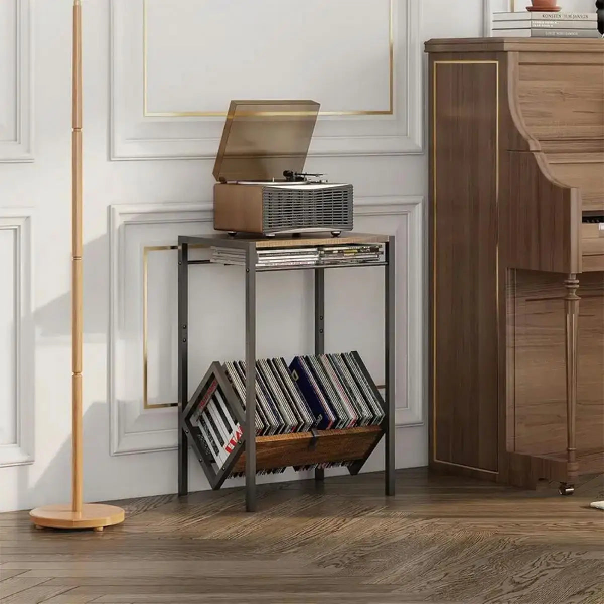 1. Large capacity vinyl records: For avid vinyl record collectors, this record rack with album storage function is a great choice. The additional storage space at the bottom can accommodate more vinyl records, allowing you to organize them according to your preferences. This design is easy to display and access, so you can quickly find the vinyl records you need.