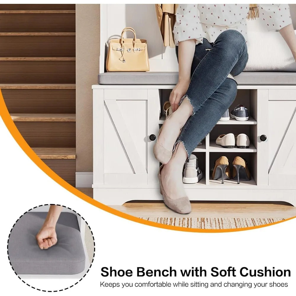 - Comfortable Bench: The hall tree's shoe bench comes with a soft cushion, providing a cozy spot for changing shoes. The sponge padding adds extra comfort, while the removable cushion cover makes cleaning easy. Whether you're starting your day or winding down, this upholstered bench offers the perfect combination of support and relaxation