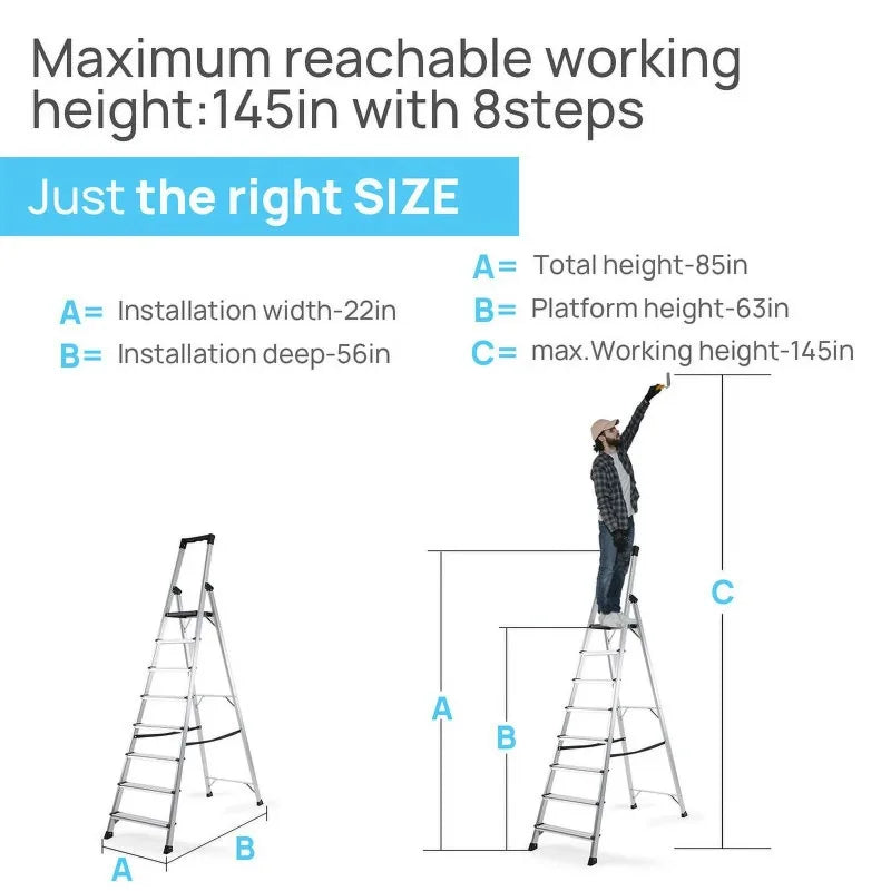 - 【Safety & Stability】The ladder is made of an ultra-light but strong and durable aluminum frame. Use embedded reinforced beams to ensure the safe use of ladders. Supports a maximum load capacity of 330 lbs.