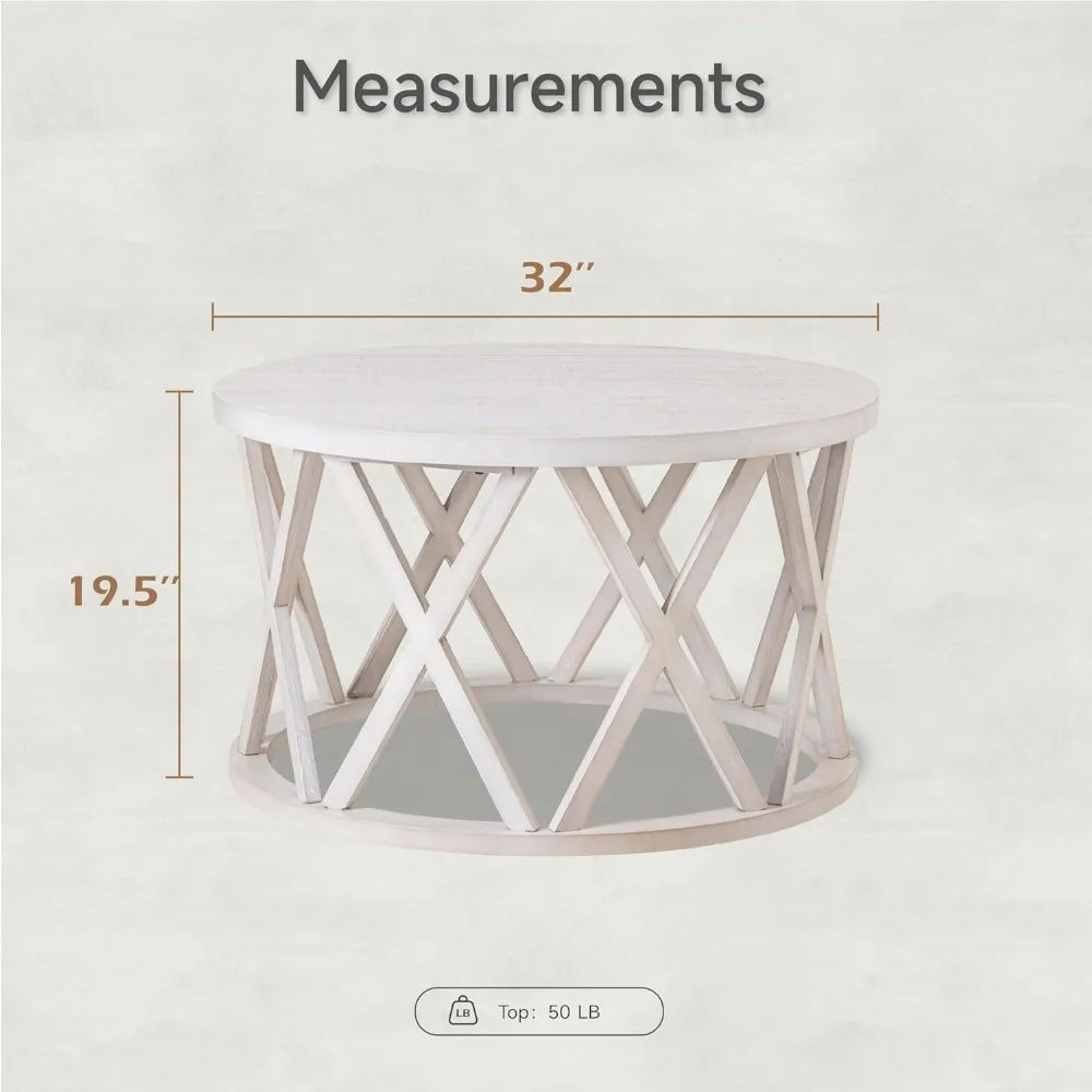 - ✅【DESIGNER STYLE】A drum shape with repeated "X" motifs form a unique base and the round top has a planking effect full of detail in a weathered finish. Make it bold and beautiful when you round up the rustic style of this round coffee table. You'll love the casual look that's delivered through its transitional design.