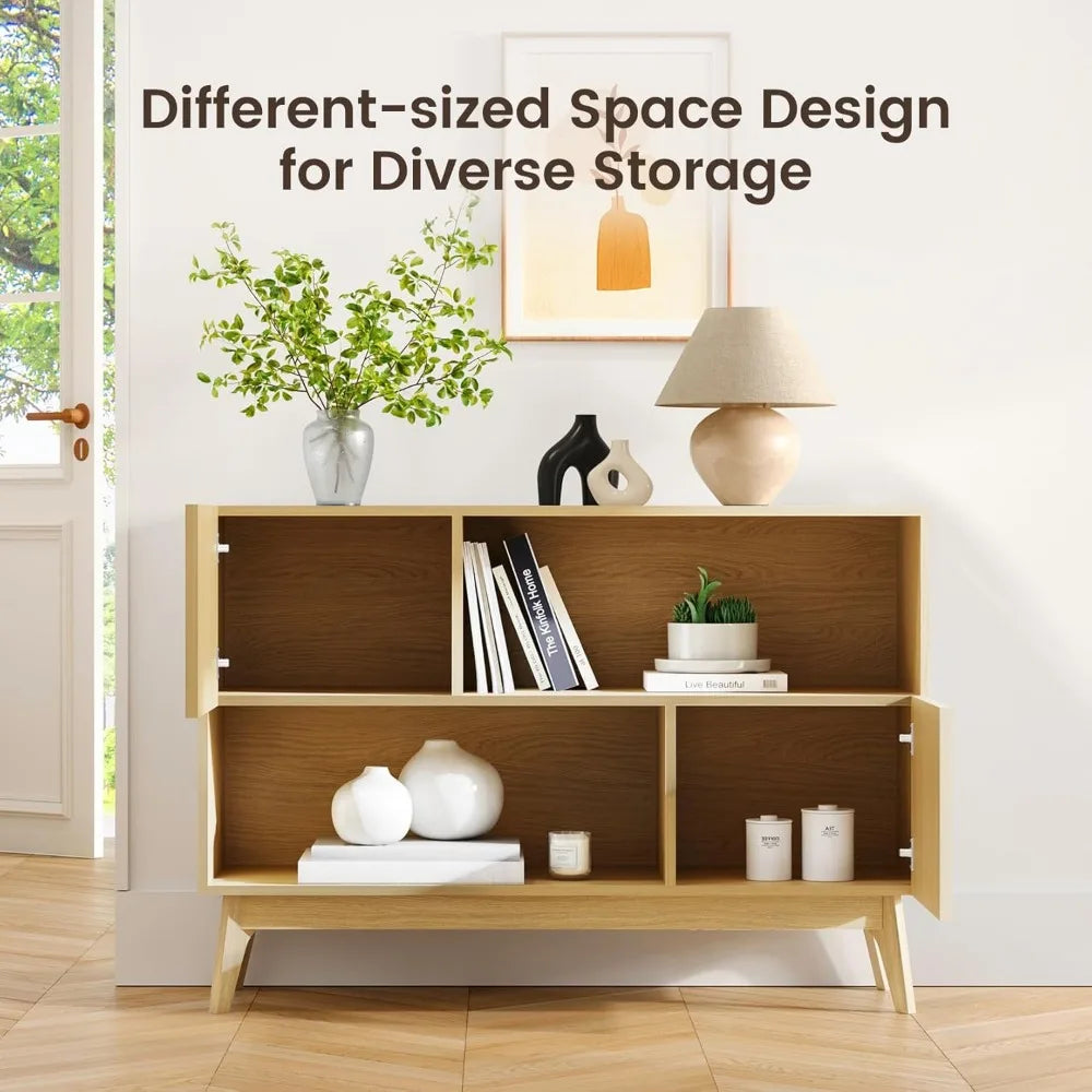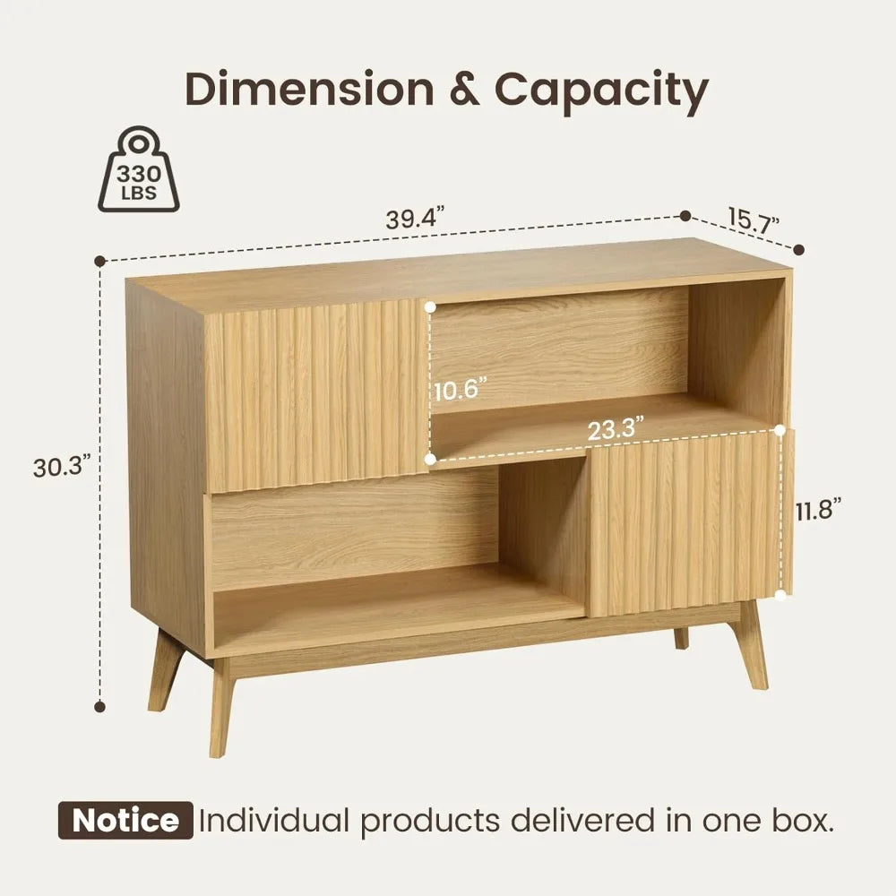 - Multifunctional Cabinet - This cabinet features 2 hidden storage area (16.1"W) and 2 open shelves (23.3"W), making it an excellent choice for multi-functional furniture such as accent cabinet, buffet cabinet, sideboard, entryway cabinet, etc., giving you the flexibility to customize your storage needs to your preferences. The elegant design makes it easy to fit into any living room, dining room, or other room, adding to the beauty of the space