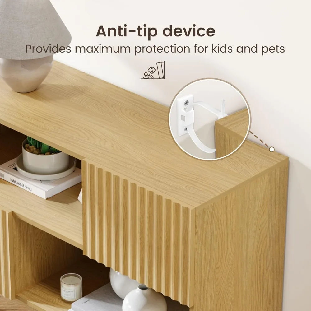 - Fluted Buffet Sideboard - This storage cabinet exudes modern elegance with its vertical striped groove design. The staggered arrangement of the living room cabinet storage space adds a stylish touch. Whether using this credenza alone or in combination with a TV stand, storage cabinet or coffee table from the same series, you can easily create a living room that combines practical storage functions with an elegant temperament, adding a lot of color to your decoration