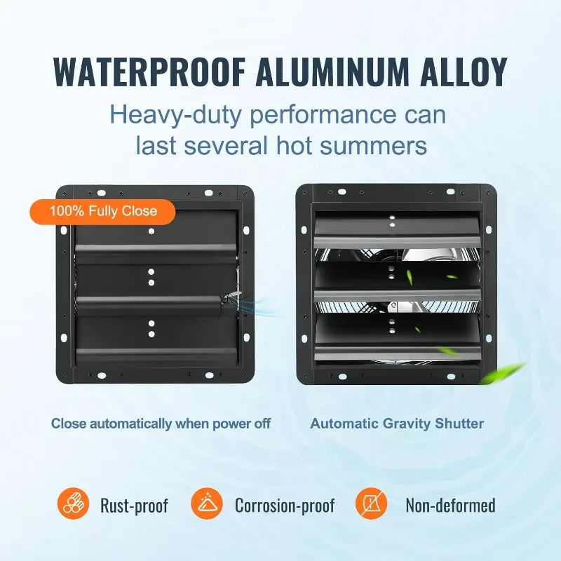 - Rust-proof Material: The exhaust fan has a rugged all-metal structure and features a powder-coated steel frame, aluminum alloy fan, and shutter, which is highly resistant to weather, liquid, and dust. It is perfectly suitable for any place you install and stays with you through the long, sultry summer!