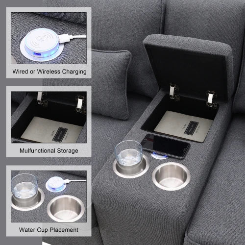 This is a modern and stylish multifunctional sofa,the linen fabric is breathable and wear-resistant.Large seat depth can let you in the most relaxed way possible.For convenience, it has a lot of storage space.In the middle of this sofa,there is a console for storage.on the side,it also has 3 storage pockets of different sizes.The most surprising point is that it can be wired or wirelessly charged.It is very friendly to people who use electronic devices a lot.
